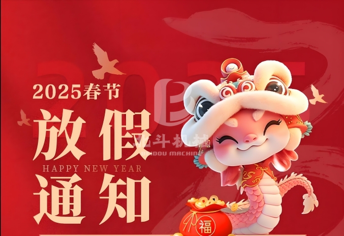 春節(jié)將至,結(jié)合工廠實際情況,現(xiàn)將春節(jié)放假時間通知如下:2025 年 1 月 25 日(農(nóng)歷臘月二十六)至 2025 年 2 月 2 日(農(nóng)歷正月初五)放假,共 9 天,2 月 3日(農(nóng)歷正月初六)正式上班。